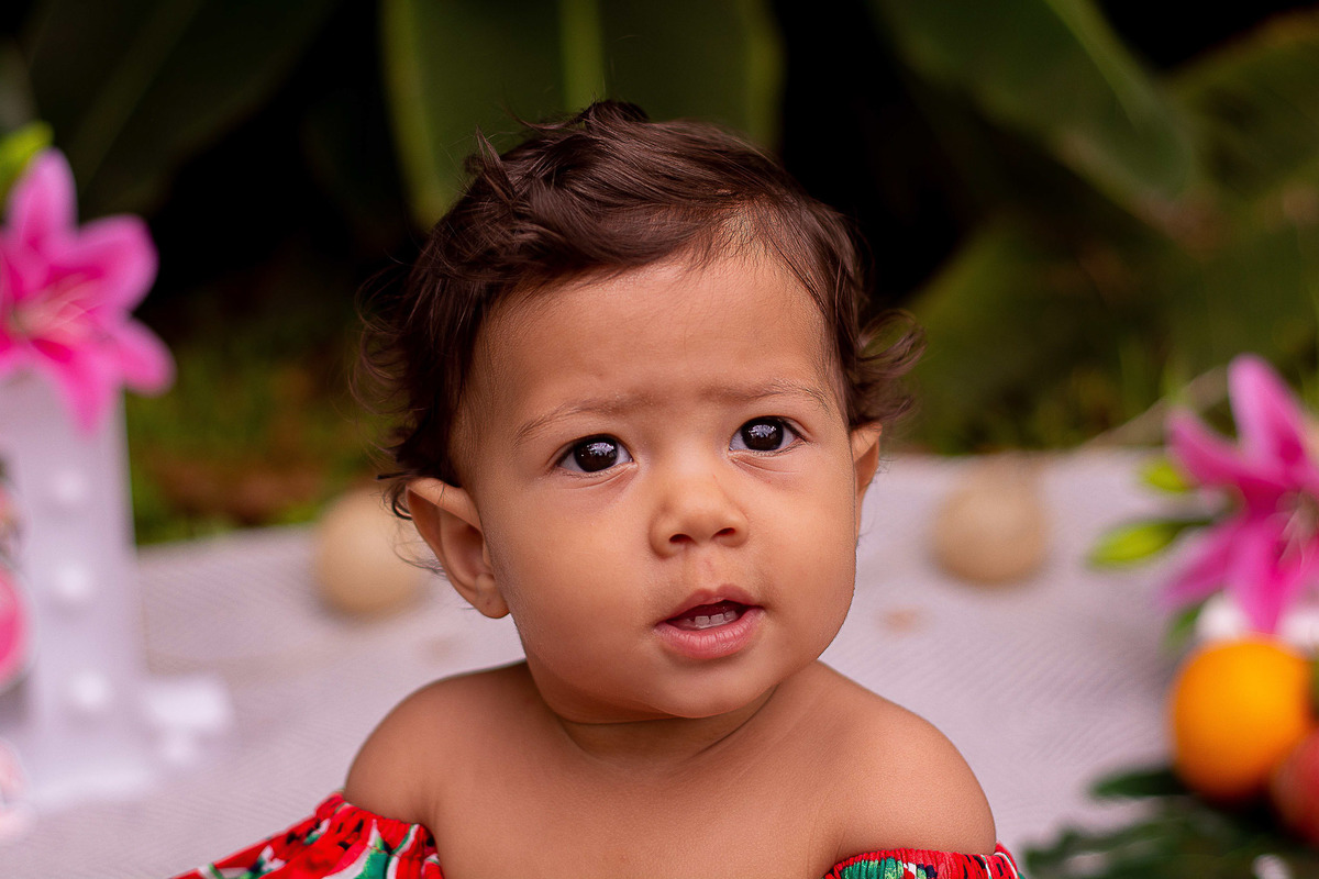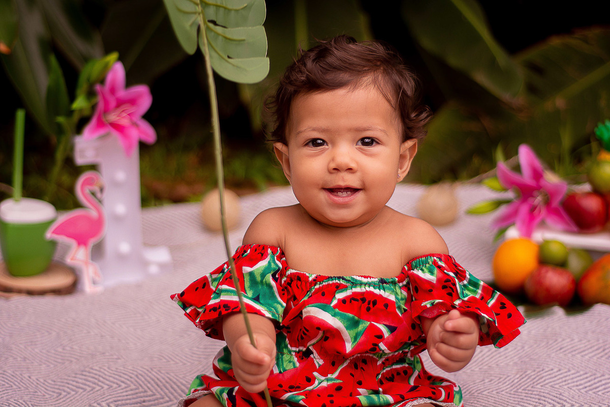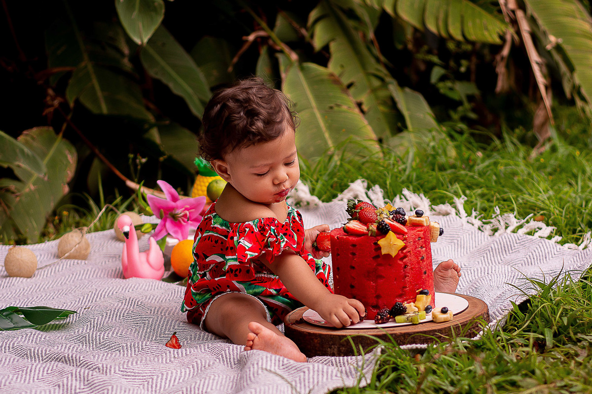 A mamãe Yara me pediu o tema Tropical para a sessão de Smash da Violeta, e mais .. um bolo de frutas!
